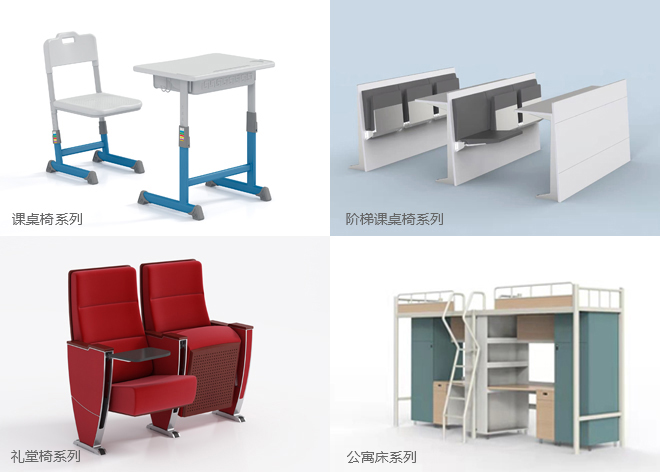 20年植根于教育市場,專業(yè)研發(fā)學(xué)校辦公家具、學(xué)生課桌椅、禮堂椅、公寓床、影院椅等,涵蓋10大品類,5000款單品。